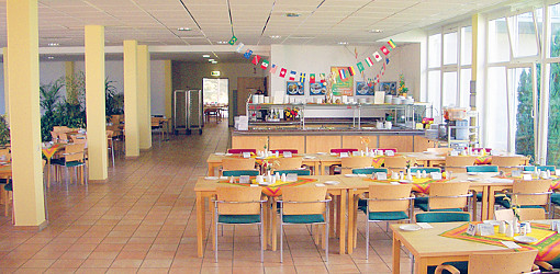 Frühstücksbüfett, Mittagsmenü (Auswahl aus 3 Gerichten, Dessert, Salatbüfett) und Abendbüfett im Medical-Wellness-Speiseraum (getrennt vom Patientenbetrieb).