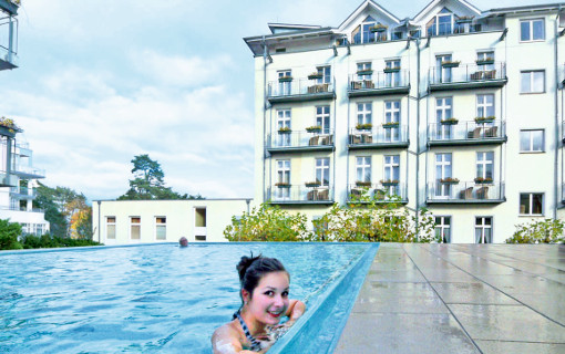 Das familiengeführte Strandhotel Heringsdorf liegt direkt an der Strandpromenade, der Ostseestrand ist nur 30 m vom Hotel entfernt.