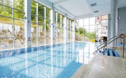 - Schwimmkomplex-Nutzung: Schwimmbad, Sole-Whirlpool, Außen-Whirlpool, finnische Sauna, Dampfbad, Salzgrotte, Eisgrotte