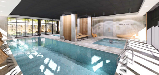 Hoteleigene Anwendungsabteilung, Hallenbad (Leitereinstieg, 11 x 4 m), beheiztes Freibad (20 x 5 m, nur im Sommer), Whirlpool, Kinderbecken, Dampfbad und Sauna.