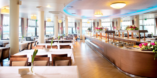 internationaler Küche anbietet. Frühstück, Mittag- und Abendessen in Buffetform.