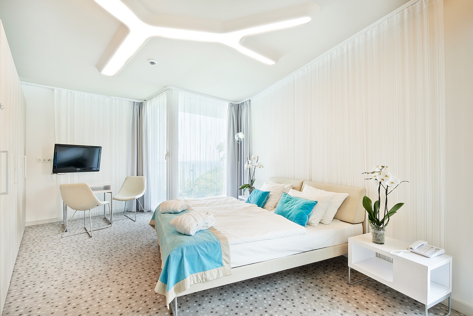 DZ Standard: verbindet Komfort mit Eleganz, und von dessen Terrasse kann man den atemberaubenden Meerblick genießen. Doppelzimmer haben Dusche/WC, Haartrockner, Safe, TV, Klimaanlage, Mini-Bar, Kaffee- und Tee-Set, Wi-Fi. Zimmerfläche – ca. 26 m²